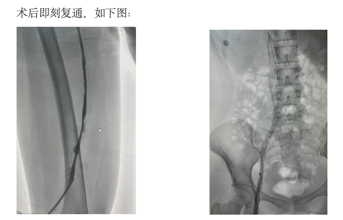 造影显示,原本堵塞的血管恢复通畅,血流立现!团队同时留置溶栓导管,为后续持续溶栓做准备。