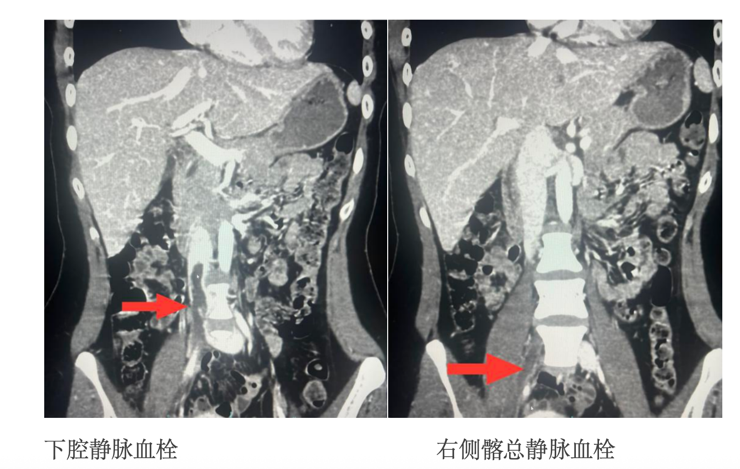 检查结果令人震惊:彩超与CT显示,小玲从肾静脉水平以下的下腔静脉,到右侧整条髂总静脉、股静脉、腘静脉,乃至肌间静脉,几乎全程被血栓堵塞!更危险的是,部分血栓已脱落造成急性肺栓塞。