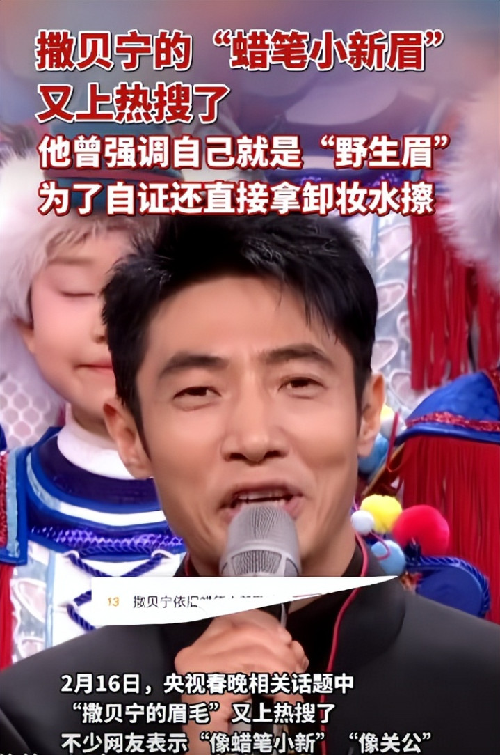 去年,撒贝宁就因为眉毛太浓,被笑称 “蜡笔小新”。他还专门直播卸妆,证明自己是野生眉。