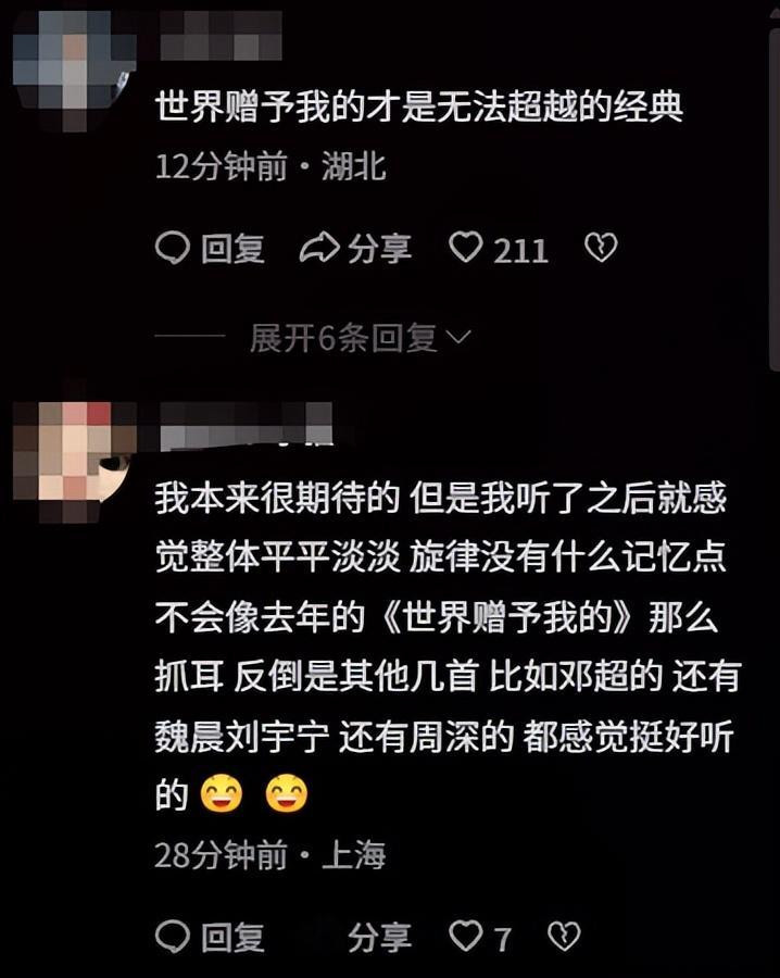 不少人都觉得,远不如去年的《世界赠予我的》有传唱度。