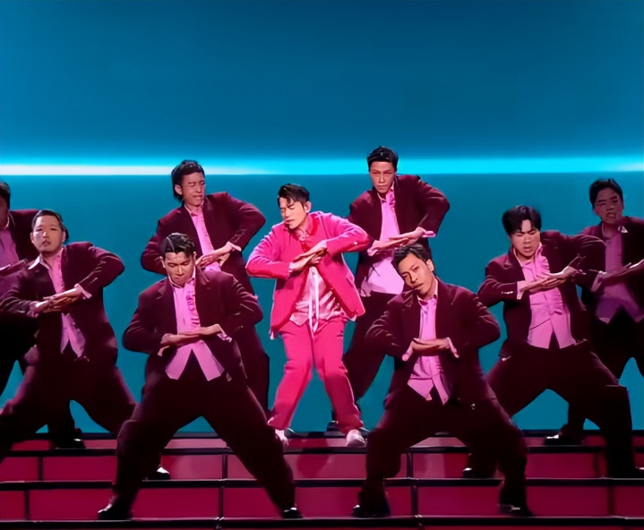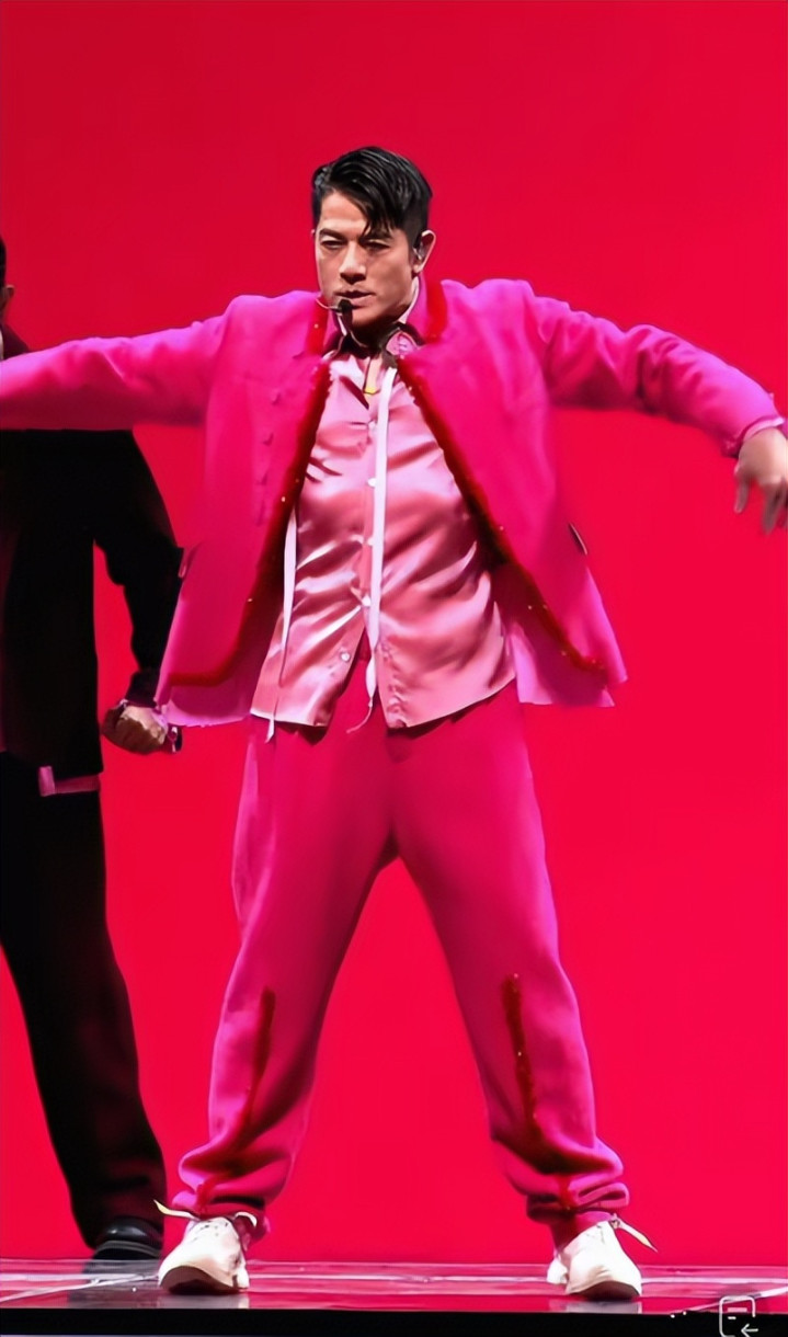 郭富城的衣服单独看,说实话有点五五分,显矮显邋遢。但因为颜色靓丽,在春晚舞台上就特别吸睛,节目效果拉满。