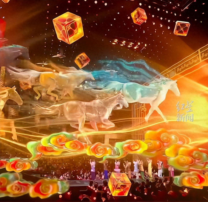 2026年马年央视春晚,除夕夜准点开播。今年主题是 “骐骥驰骋 势不可挡”,舞台科技感拉满。开场8匹奔马艺术装置,是由五千多块翻转模块组成,配合 AI、AR 技术,视觉效果特别震撼。